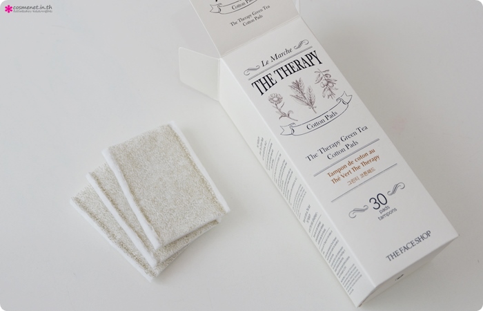 Chiết xuất bột trà xanh giúp tẩy tế bào da chết khi sử dụng. Loại bông này phù hợp để tẩy trang hơn là đắp lotion mask bởi phần mép được may cố định nên khó có thể tách mỏng. Nếu đắp mask thì rất tốn bông.