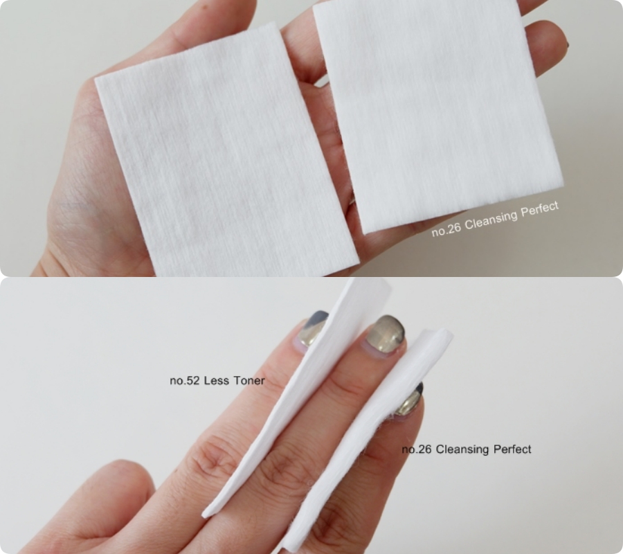 - Nếu đắp toner với No.52 sẽ rất tốn bông bởi miếng bông ép chặt rất khó tách thành từng miếng mỏng, nhưng bù lại miếng bông rất mềm mịn lau mặt hay đắp mask đều cho cảm giác rất dễ chịu.