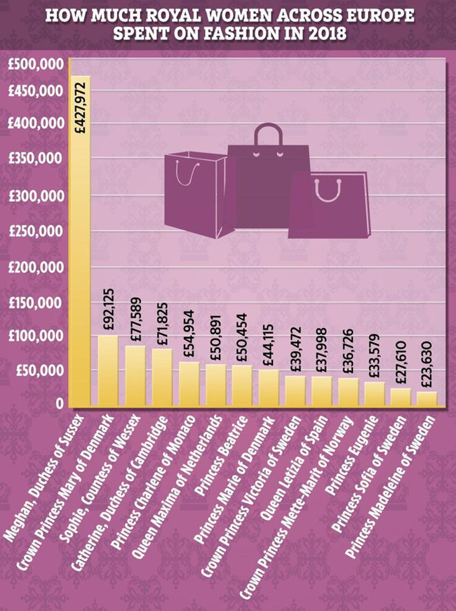 Sở dĩ khoản chi cho trang phục giảm hẳn so với năm 2018, là bởi sang đến 2019, Meghan Markle có xu hướng mặc lại những thiết kế cô từng diện trước đó nên tổng số tiền mua mới trong năm không quá nhiều.
