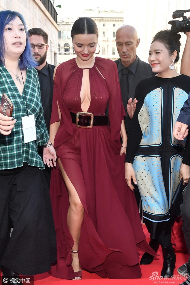 | Chiếc váy xẻ sâu từ cổ đến tận eo giúp cô khoe trọn đường cong quyến rũ. Dù không còn ở độ tuổi trẻ trung trong ngành người mẫu, Miranda vẫn là chân dài đắt show. |