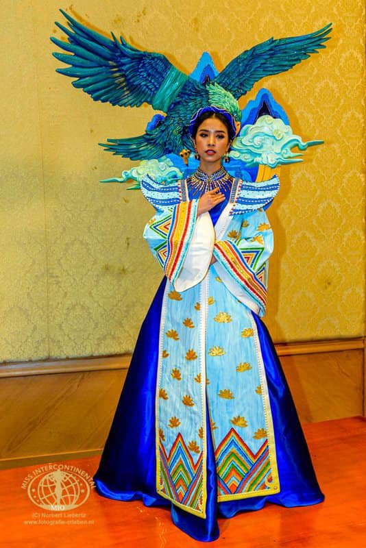 Tối 15/12, Miss Intercontinatal - Hoa hậu Liên lục địa 2019 đã tổ chức phần thi trang phục dân tộc với màn đọ sắc của các người đẹp đến từ khắp nơi trên thế giới. Á hậu Thúy An - đại diện Việt Nam gây ấn tượng với bộ trang phục cô tên “Phi Thúy Sơn - Điểu Tinh đoạt Công chúa”, lấy cảm hứng từ truyện Thạch Sanh và được đánh giá nổi bật trong đêm thi.
