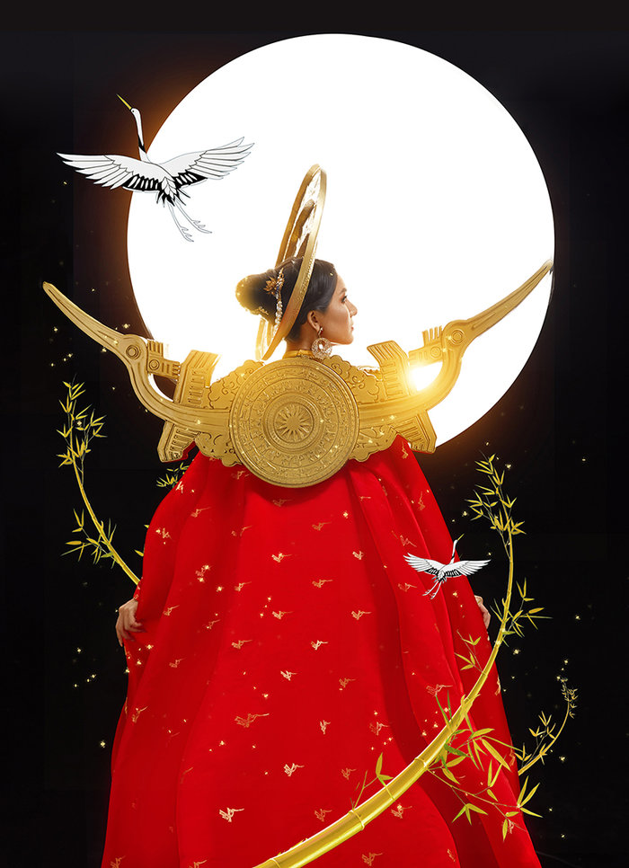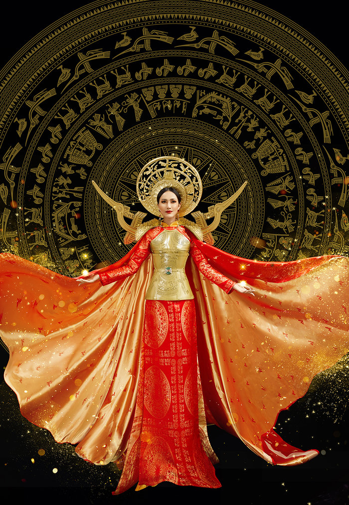 Giải thích về lý do chọn các họa tiết này, nhà thiết kế Văn Thành Công cho biết anh mong muốn mang hình ảnh người phụ nữ mạnh mẽ, kiên cường từ xa xưa trong lịch sử dân tộc Việt Nam như Bà Trưng, Bà Triệu ra thế giới.