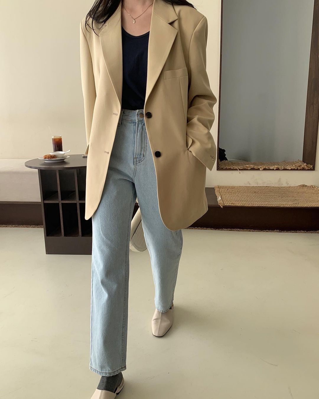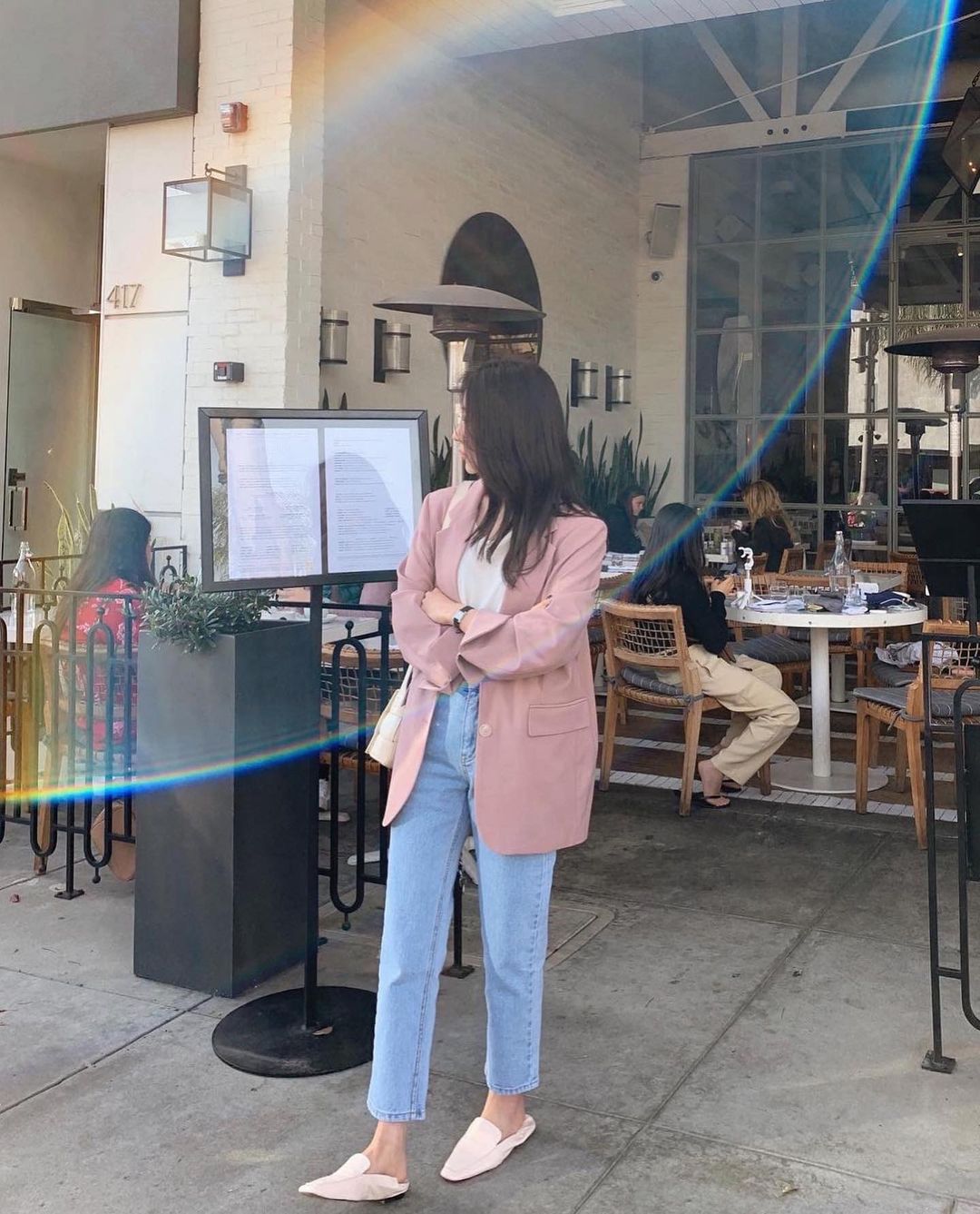 Quần jeans nói chung có quyền năng hack tuổi, dù kết hợp với item nào. Điều này cũng hoàn toàn đúng khi bạn mix blazer với quần jeans, vẻ ngoài sẽ có được nét bụi bặm, sành điệu. Thời gian gần đây, các quý cô sành mốt thường chuộng diện blazer với quần jeans ống đứng hơn tất thảy những phiên bản khác. Với phom dáng gọn gàng, quần jeans ống đứng khi song hành với blazer sẽ cho người diện vẻ ngoài chỉn chu, thanh lịch, bên cạnh sự trẻ trung. Chưa hết, nếu ưu ái quần jeans ống đứng có độ dài trên mắt cá chân, chiều cao của bạn sẽ được cải thiện.