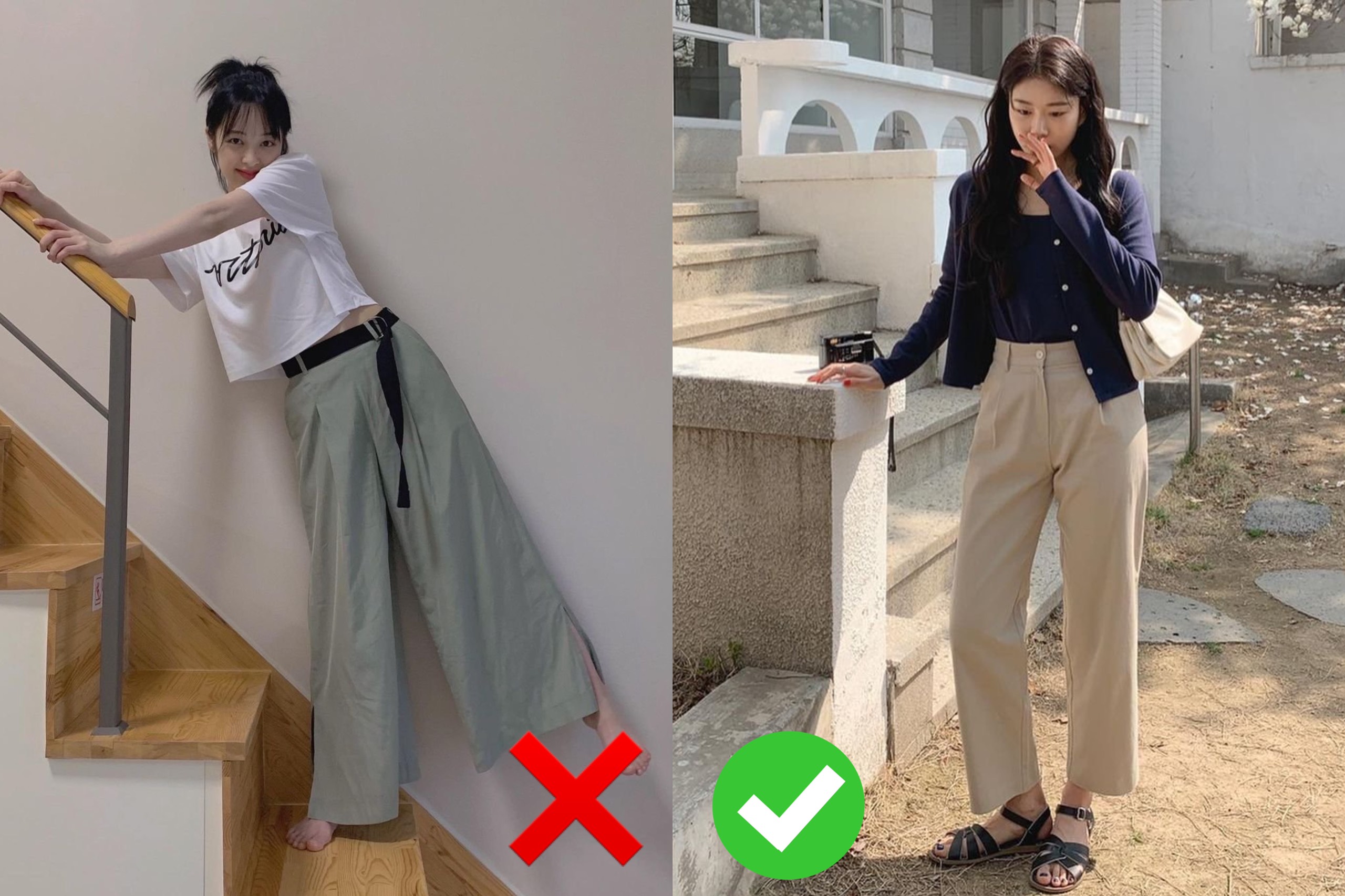 Một chiếc quần tây dài đẹp thường hội tụ những đặc điểm như lưng cao, chất liệu đứng phom vừa phải và có độ mềm mại nhất định để hài hòa, nhìn không bị thô mà cũng không "èo ọt" quá. Với thời tiết oi ả thế này, mix quần cùng set áo dây + cardigan mỏng nhẹ và đôi sandal là chuẩn chỉnh. Còn chiếc quần như cô bạn bên trái có lẽ thích hợp để mặc nhà hơn là diện đi chơi hay đi làm.