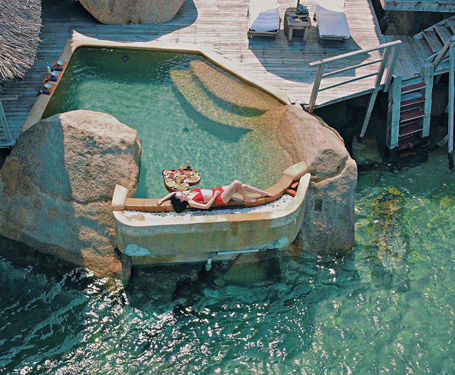 Salim có lẽ là người hiếm hoi thích diện đồ bơi một mảnh họa tiết màu mè vì các sao kể trên thì đa phần đều diện đồ trơn thôi.