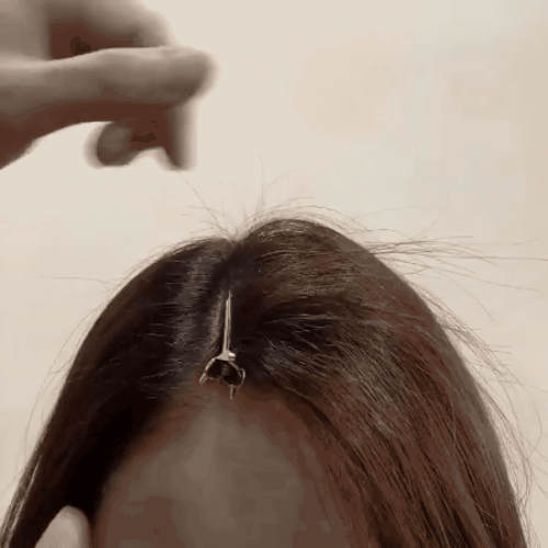 Đầu tiên bạn dùng kẹp tóc mỏ vịt cố định phần tóc lưa thưa, bông xù; xịt thêm một chút xịt tạo kiểu tóc lên trên...... rồi dùng máy sấy để sấy qua phần chân tóc. Đến khi bỏ kẹp mỏ vịt ra bạn sẽ thấy tóc đã vào nếp, không còn bị bông xù kém đẹp.