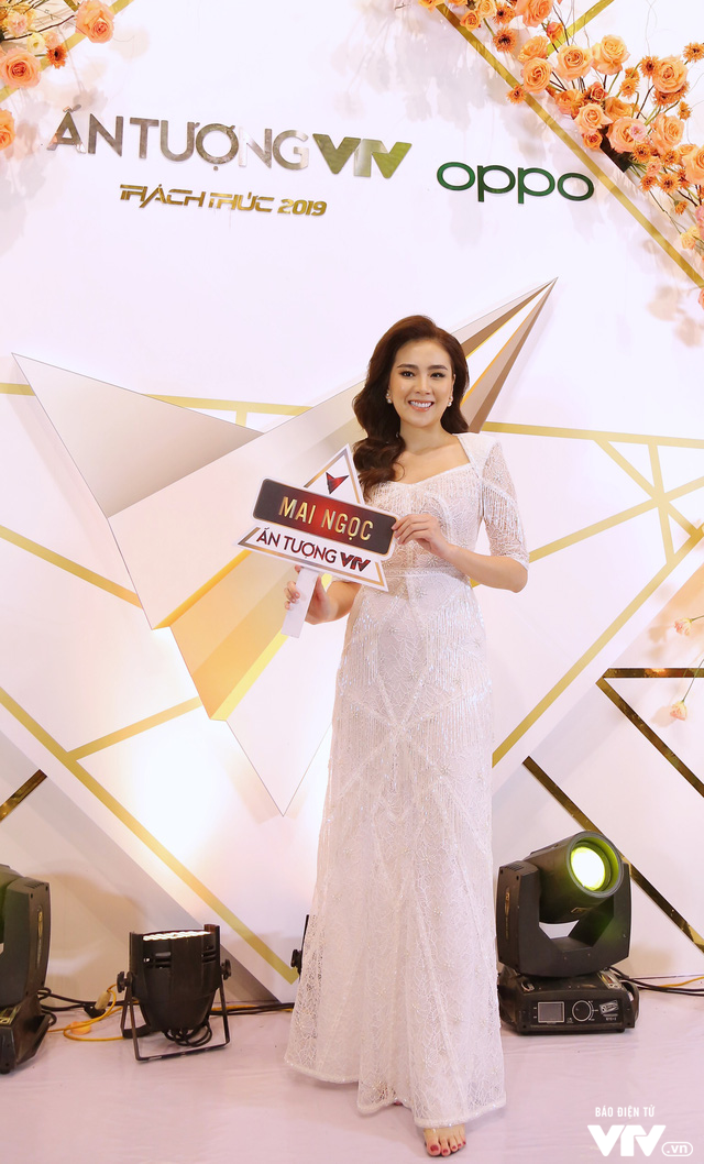 Tại VTV Awards 2019, Mai Ngọc diện mẫu váy trắng khá đơn giản với dáng dài thướt tha nữ tính. Thân váy đính kết nhiều chi tiết đá cườm tạo độ nổi bật và bắt sáng. Váy có phần eo may cao tạo cảm giác đôi chân trông dài hơn, giúp hack dáng đáng kể.