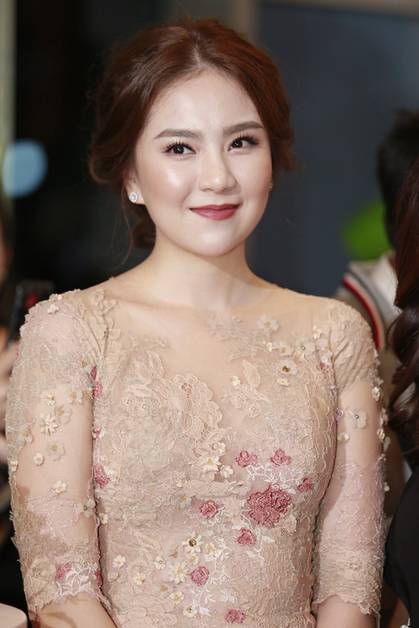 Để phù hợp với tông màu của váy, nàng MC đã chọn lối trang điểm thiên về tông nâu trầm với màu son tối màu, đánh mắt kỹ càng, lông mi giả ấn tượng. Dù rất xinh đẹp nhưng rõ ràng lối họa mặt này vẫn khiến MC Mai Ngọc trông dừ mà mờ nhạt đi ít nhiều.