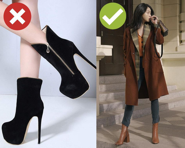 Biên tập viên Kristen Nichols cho hay: "Ở hiện tại, tôi đã không còn mặn mà với mấy đôi boots có gót siêu cao. Thay vào đó, tôi sẽ hoàn thiện phong cách bằng mấy đôi boots cao cổ nhưng có phần gót cao vừa phải". Boots cao gót khủng dẫu giúp bạn ăn gian được cả chục phân chiều cao nhưng chưa chắc đã phù phép cho đôi chân thêm dài; đó còn chưa kể, item này dễ khiến set đồ trông nặng nề, thiếu tinh tế.