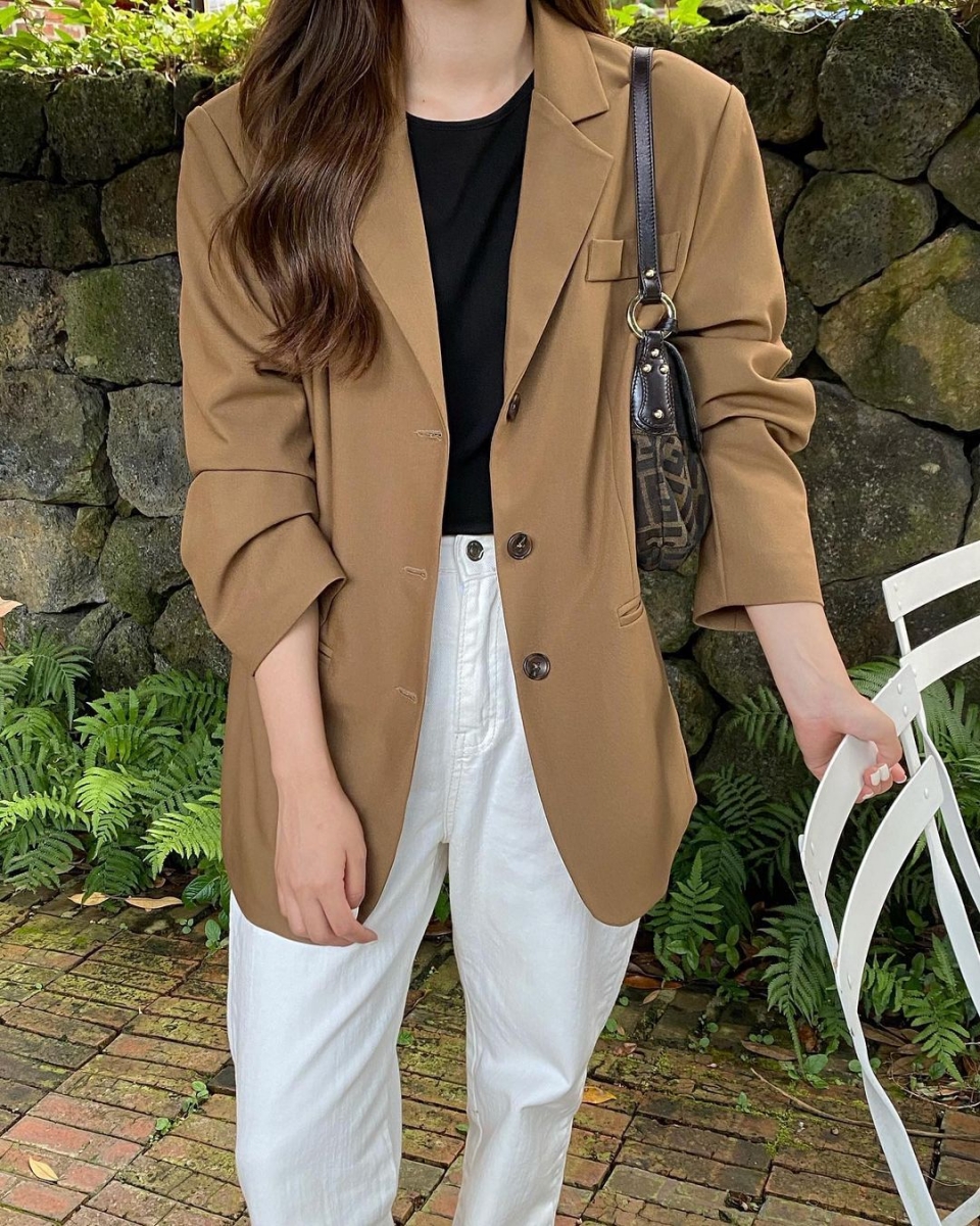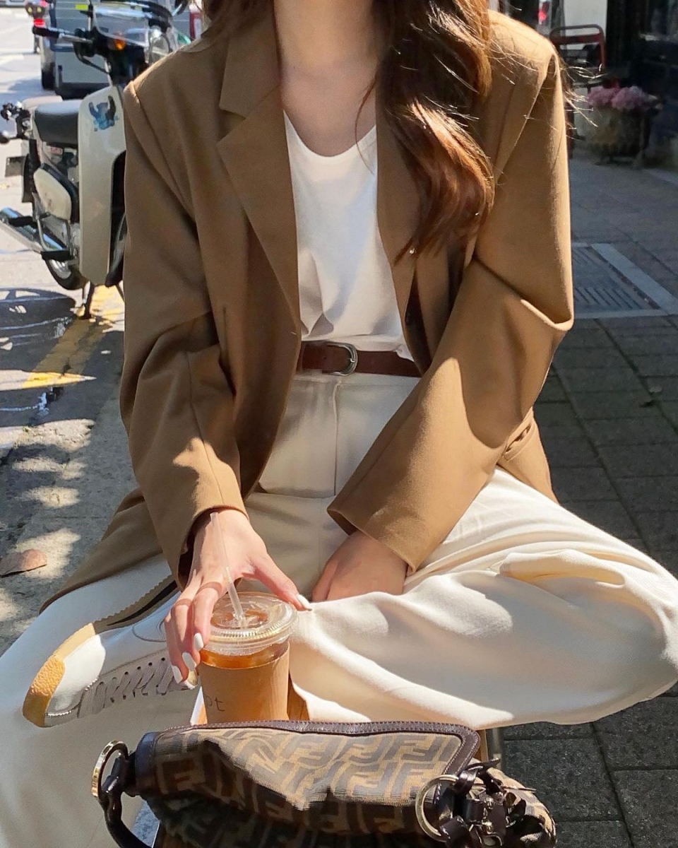 Áo blazer không chỉ trẻ trung mà còn vô cùng dễ mặc, mang đến cảm giác thu hút và trẻ trung tức thì cho người diện. Tuy nhiên khi chọn áo blazer, bạn nên tạm gác màu đen xỉn và già dặn sang một bên, đổi sang tông màu mơ hoặc màu camel nhẹ nhàng bởi chúng không chỉ tôn lên khí chất thanh lịch của người phụ nữ mà còn mang cảm giác ấm áp, xua tan giá lạnh mùa Đông. Những tông màu này cũng không quá khó diện, mặc đi làm hay đi dạo phố cũng ổn cả.