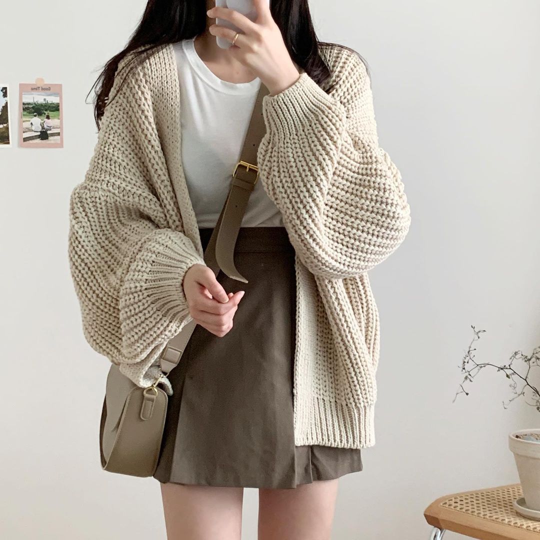 Những ngày mùa Đông không quá lạnh, thì áo len dệt kim là món đồ cần có vừa giữ ấm vừa thể hiện sự ngọt ngào của người diện. Áo cardigan vặn thừng nên chọn màu sáng chút đỉnh vì sẽ tạo cảm giác tràn đầy sự trẻ trung có thể phối với áo trắng như áo giữ nhiệt, áo phông hay áo blouse; sau đó kết hợp với váy màu camel sẽ là combo hoàn hảo, hợp với mùa lạnh mà lại dễ mặc và giữ được nét sang trọng cho người diện.