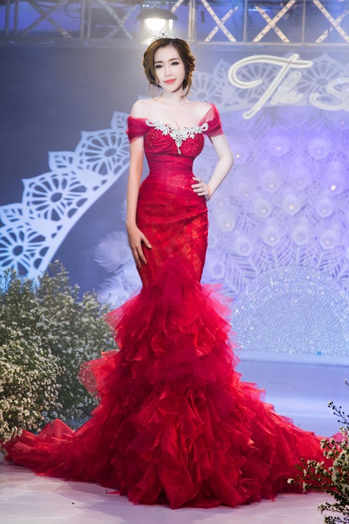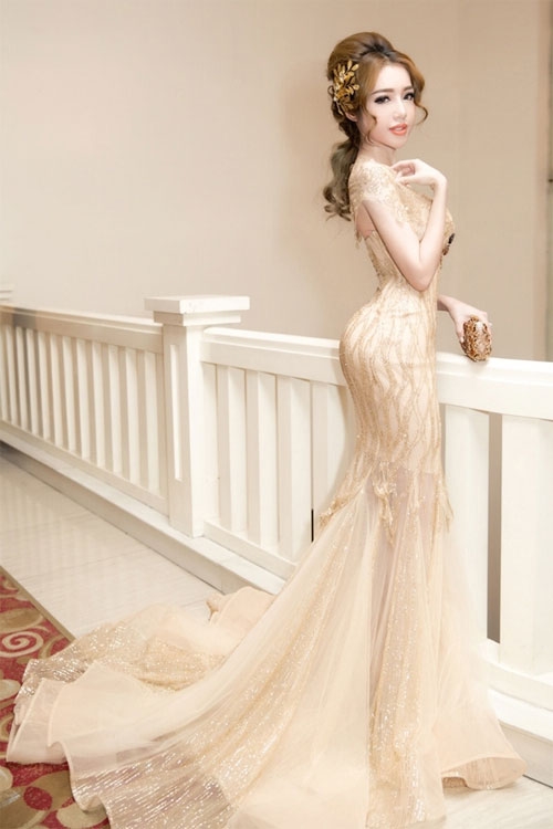 Váy dạ hội tôn ưu điểm về hình thể luôn được 'bà mẹ hai con' lựa chọn khi tham gia các sự kiện văn hóa giải trí. |