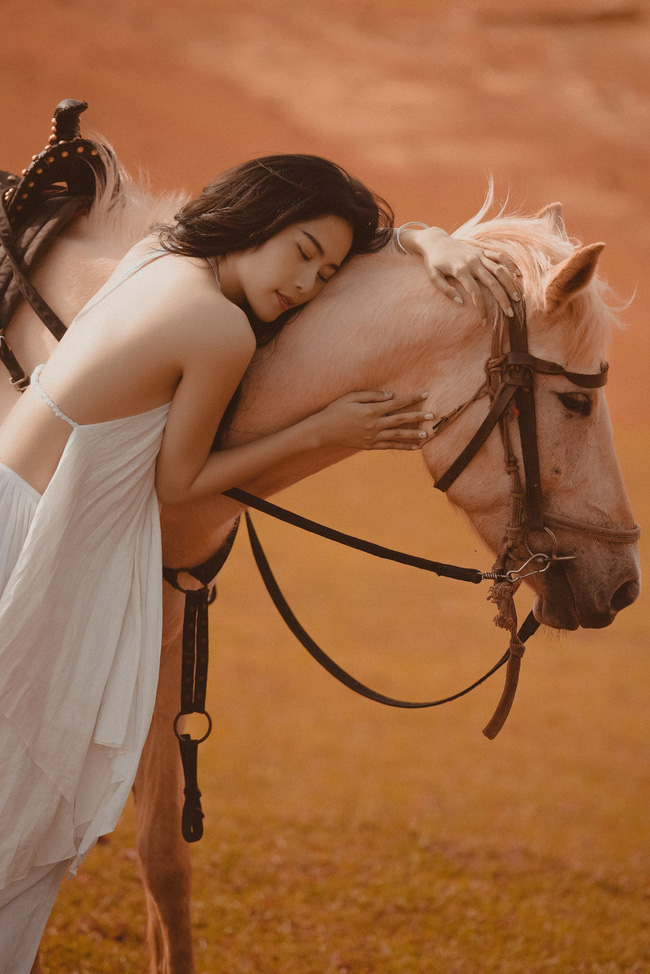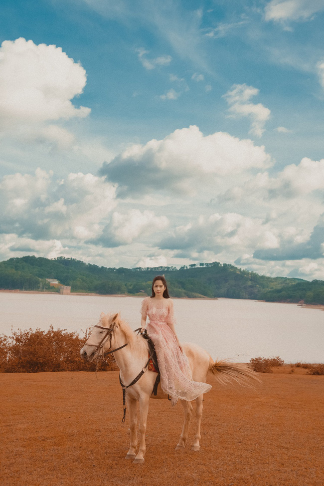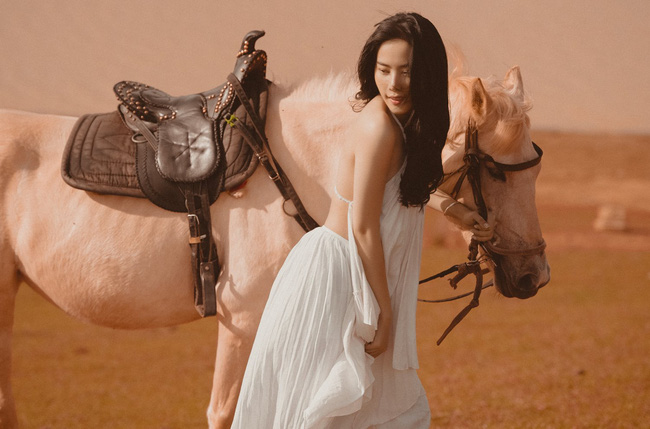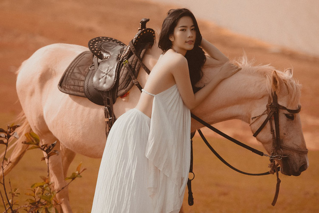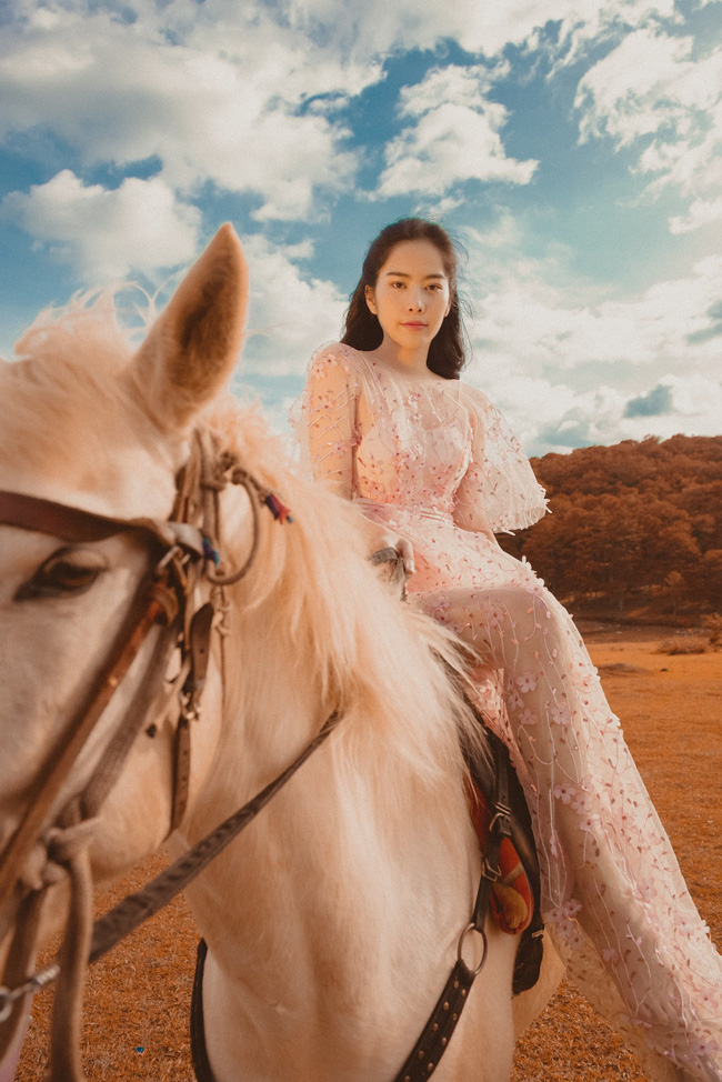 Hiểu được điều đó, Nam Em luôn chọn cách makeup nhẹ nhàng, đặc biệt với bộ ảnh lần này thì chính sự giản dị đó lại phù hợp với khung cảnh đồi vắng hoang sơ, cuốn hút. Nam Em cũng cho thấy khả năng cưỡi ngựa thuần thục của mình khi thực hiện nhiều pose ảnh cùng chú ngựa mạnh mẽ.