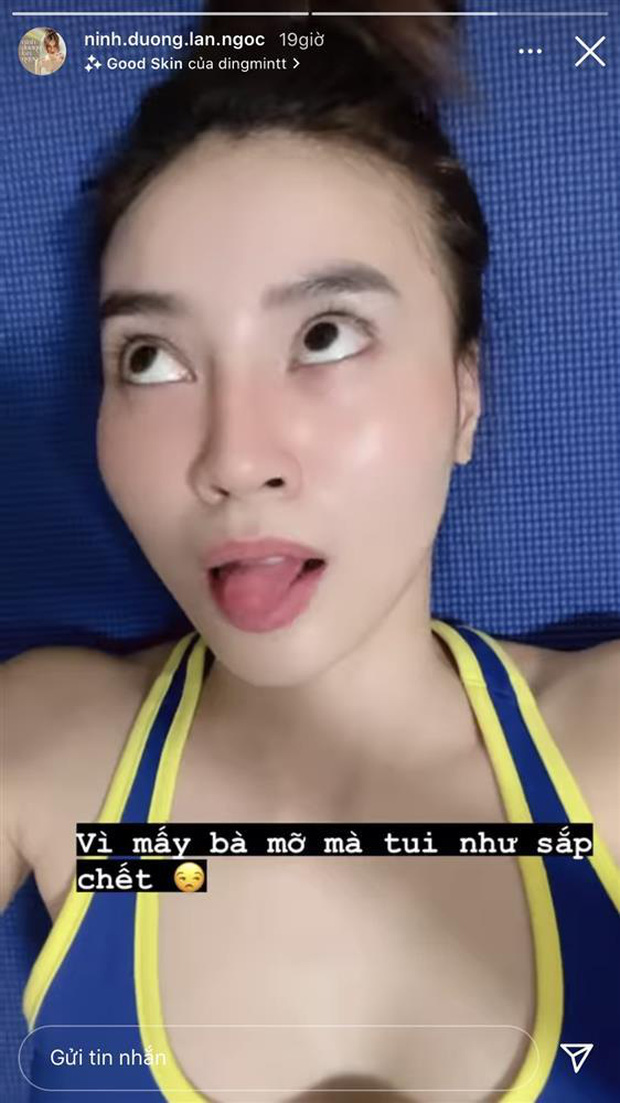 Mới đây trên Instagram cá nhân, Ninh Dương Lan Ngọc đã đăng khoảnh khắc diện bộ đồ tập ở nhà. Điều hay ho là nàng không chụp toàn thân mà lại zoom vào... bé mỡ.