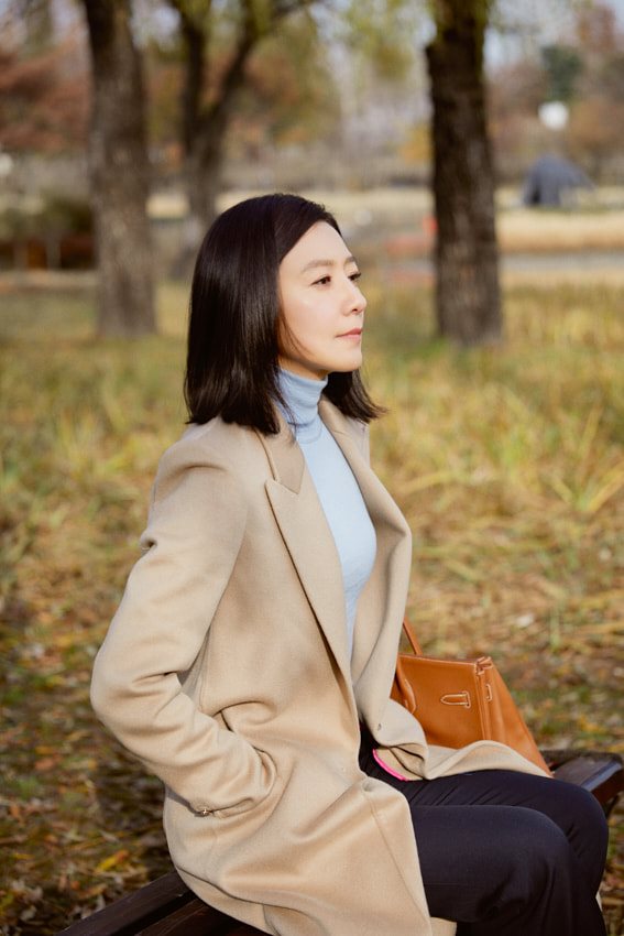 Chị đại Kim Hee Ae luôn chọn những thiết kế áo khoác dáng dài với phom dáng basic cơ bản để mix cùng những bộ cánh công sở như chân váy bút chì + áo blouse, quần ống rộng + sơ mi. Những thiết kế mà chị đại chọn đều có kiểu dáng đơn giản với chiều dài quá gối chuẩn chỉnh style của phụ nữ tuổi 40 +. Cô cũng chọn những gam màu trung tính cơ bản và ổn định nhất cho style của mình.