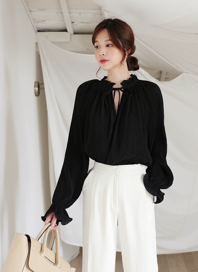 Diện vào mùa hè thì hơi ngốt ngát nhưng sang đến mùa se lạnh, chị em nên tranh thủ xúng xính ngay mẫu áo blouse cao cổ.