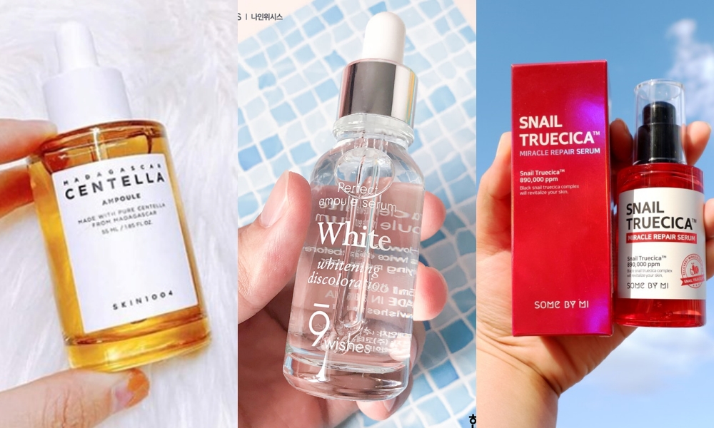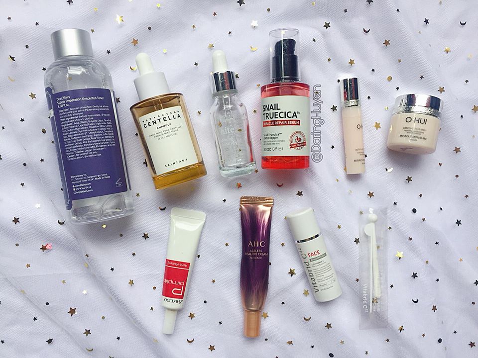 + Ampoule Skin1004 Centella (Giá khoảng 350.000 VNĐ/ 55ml): Mình khá ưng em này vì độ nhanh thấm và làm dịu da khá hiệu quả, tuy nhiên chất serum lỏng, mà mình dùng cả sáng lẫn tối nên hơi hao, nhưng nếu hết chắc chắn mình sẽ mua lại.