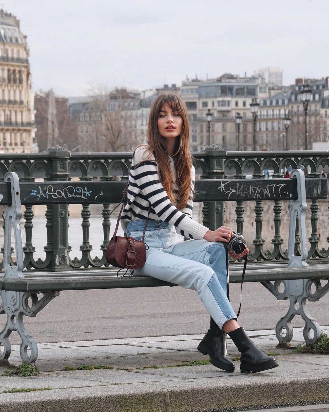Nếu diện mãi quần jeans với áo sơ mi trắng hay áo thun màu trung tính thì style của chị em sẽ nhàm chán, không có sự đột phá. Mara Lafontan thì không như vậy, cô khiến style của mình trở nên thú vị hơn bằng cách diện quần jeans với những items như là áo len tăm, áo kẻ ngang để tăng thêm phần trẻ trung, sành điệu. Vào mùa lạnh, chị em có thể học theo công thức mix đồ denim-on-denim hay combo quần jeans ống loe + áo cổ lọ và blazer đầy thời thượng, cool ngầu của Mara Lafontan.