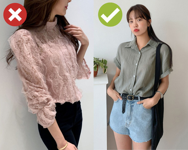 Khi đi mua sắm, bạn sẽ bắt gặp khá nhiều những chiếc áo blouse diêm dúa với bèo nhún, hoa văn và được xếp chồng nhiều lớp vải voan/đăng ten trông rất bắt mắt, điệu đà. Tuy nhiên, kiểu áo này là khoản đầu tư khá mạo hiểm vì diện lên không được mát mẻ cho lắm, nếu không muốn nói là siêu ngốt và khó chịu. Bạn vẫn nên đầu tư cho những chiếc áo sơ mi vải thô, đơn giản thì sẽ có được những set đồ trendy và nhẹ tênh, mát mẻ.