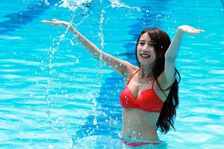 Vũ Hải Yến tạo dáng chụp ảnh ngay dưới hồ bơi |
