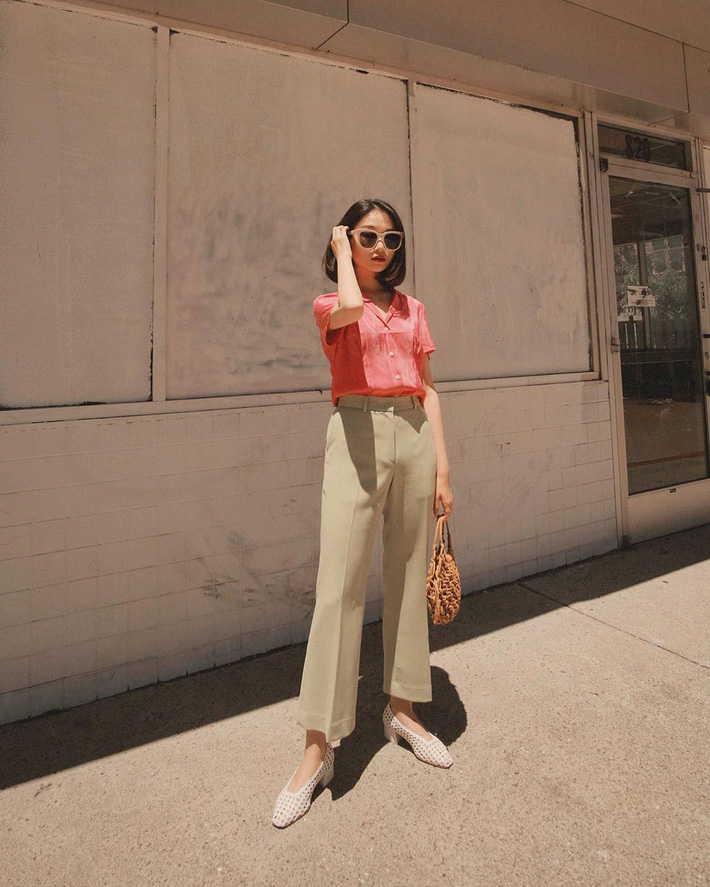 Một set đồ mát mẻ mà các nàng công sở hoàn toàn có thể học theo ngay lập tức, áo sơ mi cổ Đức mix cùng quần ống suông và giày cao gót đục lỗ giúp cho style của bạn trở nên trẻ trung hơn bao giờ hết.