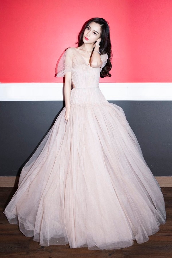 Angelababy được mệnh danh là 'nữ hoàng thảm đỏ' của Hoa Ngữ. Mỗi lần xuất hiện tại sự kiện, cô luôn trở thành tâm điểm dù bên cạnh là những mỹ nhân trẻ đẹp không kém. Được đánh giá cao cả về sắc vóc lẫn gu thời trang, Angelababy cũng là mỹ nhân được mặc váy Haute Couture nhiều nhất Hoa ngữ.