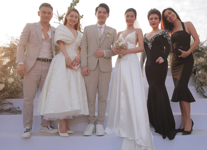 Lỗi cơ bản nhất là diện đồ trắng. Trừ trường hợp chính cô dâu đề ra dresscode là đồ trắng thì bạn cũng không nên diện đồ tông này làm gì, hãy nhường spotlight cho nhân vật chính và chọn đồ nền nã hơn. Còn trong trường hợp chính chủ chọn dresscode là trắng thì hãy bạn cũng nên chọn đồ tối giản, đừng diện váy lướt thướt tới gót chân hay bồng xoè quá độ như Minh Hà, Lâm Khánh Chi, Ngọc Trinh hay Nhã Phương nhé.