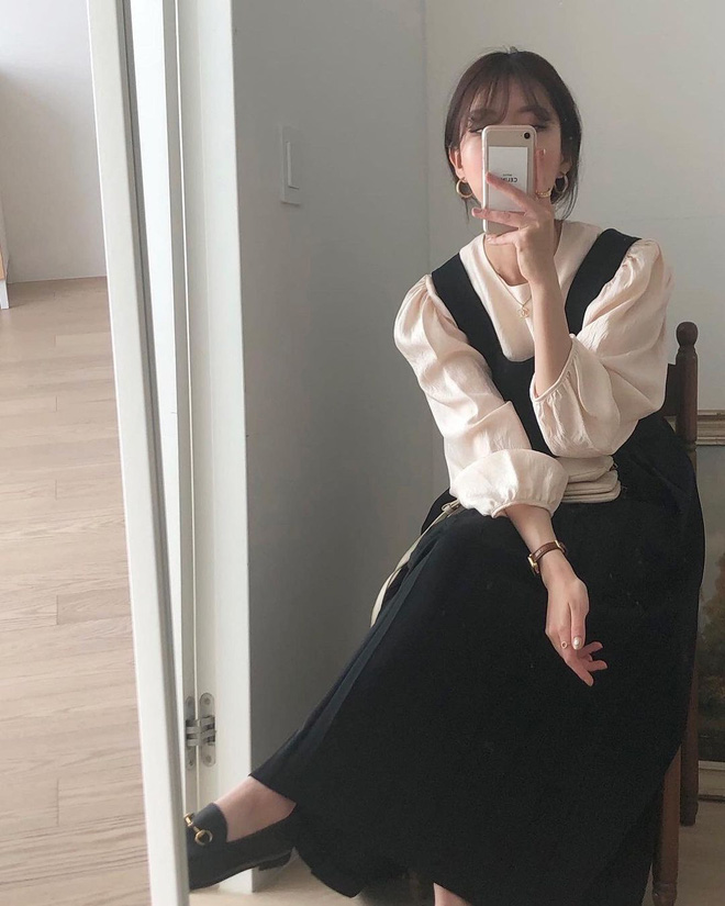 Nếu tiết trời ấm áp hoặc chỉ ở trong nhà thôi thì bạn còn có thêm lựa chọn là những chiếc áo blouse siêu xinh. Những thiết kế có chi tiết cổ nơ, cổ ren hay tay bồng đều giúp bạn ghi điểm với vẻ nữ tính và xinh xẻo. Ngoài sơ vin đơn giản thì bạn có thể mặc layer áo blouse cùng váy ghi lê sẽ thanh lịch, trẻ trung và tiểu thư vô cùng.