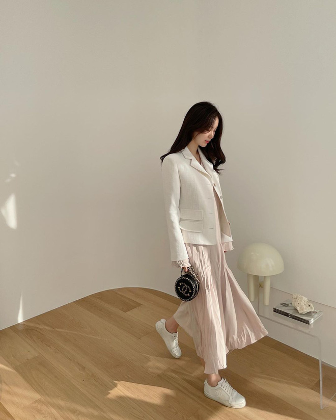 Blazer luôn là sự lựa chọn an toàn và phù hợp cho mọi hoàn cảnh. Trong ngày Tết các bạn gái muốn điệu đà và xinh đẹp hơn thì mix với váy hoặc chân váy là “ok lah”. Tuy nhiên khi lên đồ để đi chơi Tết thì bạn tránh mix&match quá công sở, hãy để blazer kết hợp cùng những chiếc váy hoa hay chân váy xòe nữ tính để phong cách thêm phần xinh xắn, tươi trẻ.
