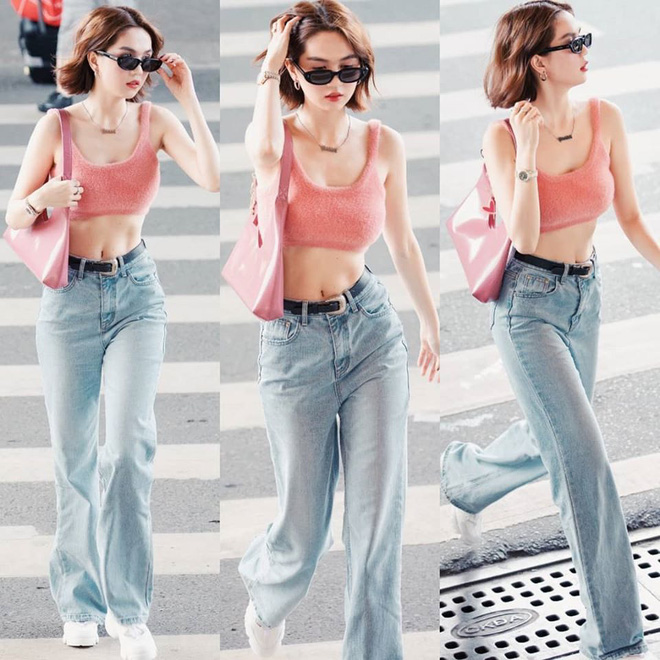 Bên cạnh đó, dạo gần đây những mẫu quần jeans ống suông ống rộng cũng đang là item được các mỹ nhân trên khắp thế giới lăng xê nhiệt tình. Điểm cộng của item này là vừa khỏe khoắn, trendy mà còn giúp hack dáng, kéo chân tôn dáng đáng kể. Và chẳng nằm ngoài cơn sốt, Ngọc Trinh cũng sắm đến cả chục mẫu quần jeans ống suông ống rộng khác biệt để chưng diện. Nhưng quần nhiều thì có nhiều, nhưng bên cạnh những bộ cánh ưng mắt thì đôi khi Ngọc Trinh vẫn để lọt những pha lên đồ chưa thực sự hợp lý.