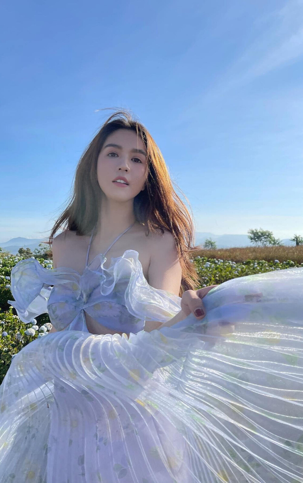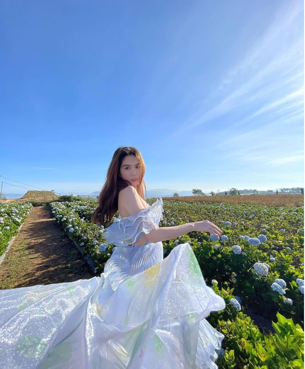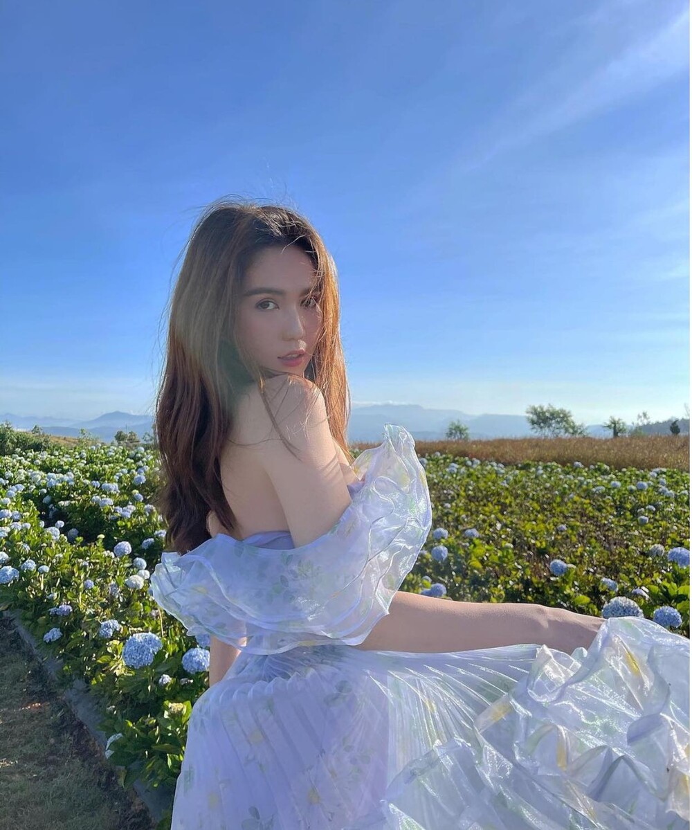 Mới đây, Ngọc Trinh đã tung ra bộ ảnh đẹp ngất ngây được chụp tại Đà Lạt. Trong bộ ảnh, người đẹp Trà Vinh diện váy xẻ cut out, phần chân váy rộng bay bổng khoe trọn làn da ngọc ngà, vòng 1 căng đây nóng bỏng.