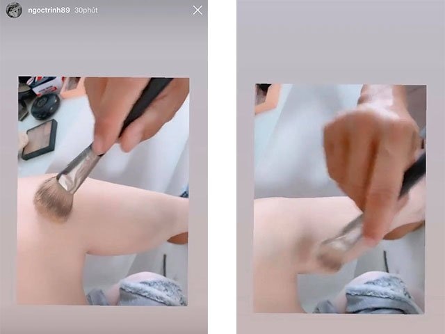 Hóa ra làn da trắng mịn màng, căng bóng toàn thân của Ngọc Trinh là thành của quả đội ngũ make up chuyên nghiệp.