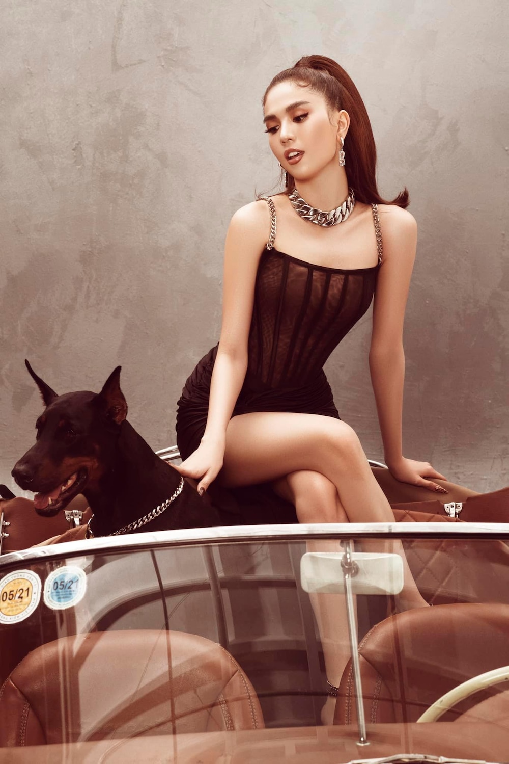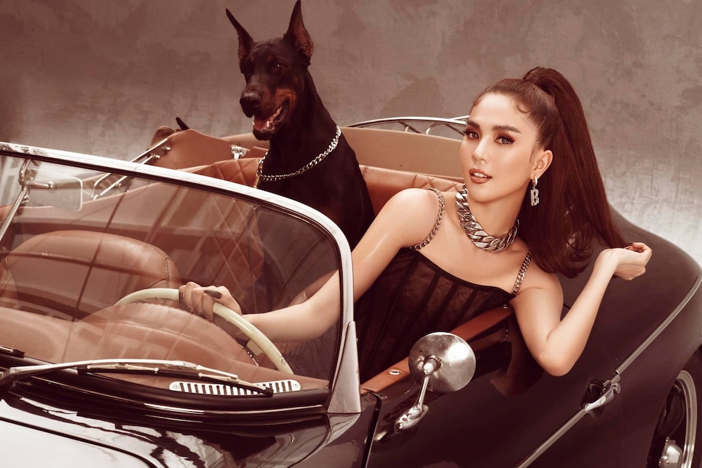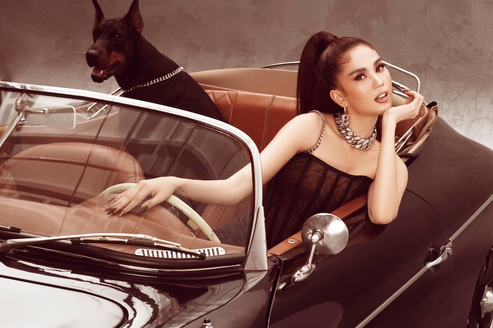 Không những thế, trong bộ ảnh lần này, Ngọc Trinh còn đem thú cưng trong những shoot hình của mình. Đó là một chú cún màu đen cực ngầu, giống chó trị giá hơn 5.000 đô la Mỹ. Ngọc Trinh ngồi trên xế sang và thả sức thể hiện sự quyến rũ hình thể trước ống kính. Khó ai có thể rời mắt trước sức nóng của nữ hoàng nội y.