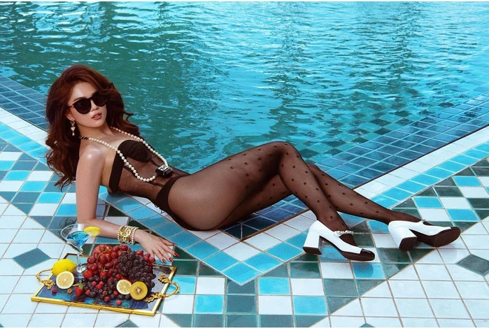 Chiều 4/11, trên trang Instagram của mình, Ngọc Trinh lại tiếp tục gây sốc với bộ ảnh mới nhất. Trong ảnh, Ngọc Trinh diện nguyên bộ bikini ren "kín kín hở hở", make up đậm đà khoe nhan sắc xinh đẹp. Khác với phong cách dễ thương, baby mà cô thường xuyên sử dụng, Ngọc Trinh trong làn da nâu toát lên vẻ quyến rũ và sexy khó cưỡng với người xem. Ngọc Trinh cũng kết hợp thêm nhiều phụ kiện từ những thương hiệu đình đám thế giới để làm tăng thêm độ sang chảnh cho bộ ảnh.