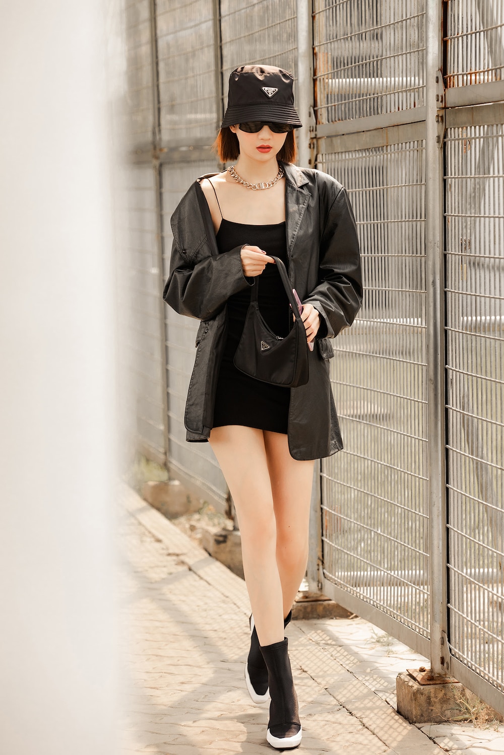 Mô phỏng theo style nữ sinh thường thấy từ các nữ idol Kpop, nữ hoàng nội y Việt Nam cũng chọn cho mình phong cách nhí nhảnh, trẻ trung này trong một lần ra sân bay khiến dân tình khen ngợi hết lời.