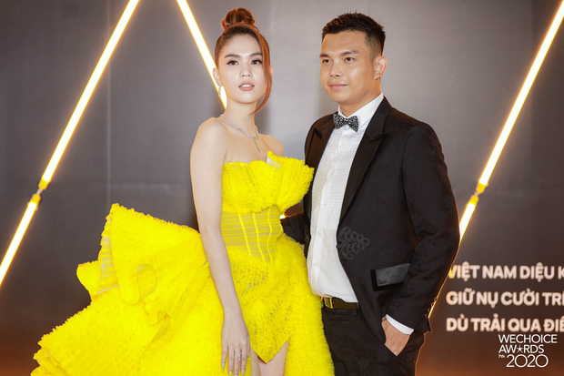 Sang đến WeChoice Awards 2020, Ngọc Trinh lại sắc sảo, "chặt chém" dàn khách mời với bộ váy màu vàng rực. Cô chọn kiểu tóc búi cao và lối trang điểm sắc sảo thể hiện rõ thần thái "chị đại" sang chảnh.