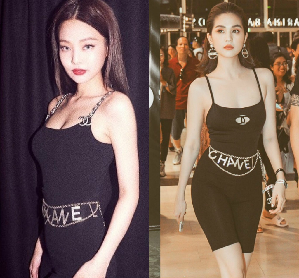 Mặc dù đụng hàng với nữ ca sĩ Jennie nhưng Ngọc Trinh có phần lần át về thần thái nhờ cách phối đồ với những phụ kiện vô cùng ăn ý.