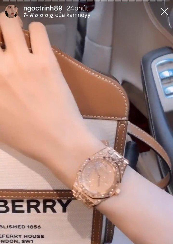Tốn kém nhất trong đợt shopping lần này của Trinh ắt phải kể đến chiếc đồng hồ giá hơn 1,8 tỷ của thương hiệu Audemars Piguet. Theo như mỹ nhân Trà Vinh tiết lộ thì đây là chiếc đồng hồ mà cô tăm tia trước đó một tuần, nên việc có "chốt đơn" nhanh gọn cũng là điều dễ hiểu thôi. Bởi tính của Ngọc Trinh vốn shopping không cần nghĩ ngợi nhiều, món nào dưới 3 tỷ thì "chơi" luôn không cần nhìn giá.