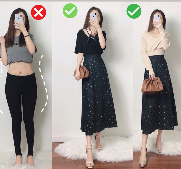 Hãy hiểu rằng vóc dáng thước kẻ chính là vóc dáng không có vòng eo, vậy nên bạn cần ưu tiên những items cạp cao giúp tạo vòng eo giả, thêm vào đó, cũng không nên chọn những chiếc áo quá bó để mặc cùng. Hãy trung thành với những kiểu áo phông freesize, áo sơ mi hay những kiểu áo trễ vai cũng khá ổn.