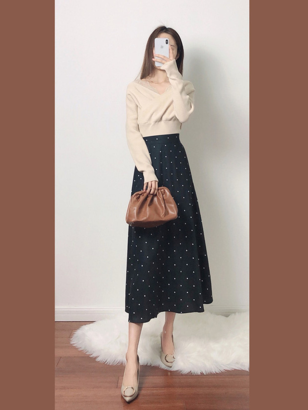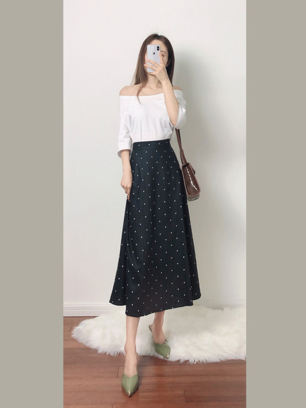 Gợi ý một số set đồ cơ bản, hợp mọi vóc dáng với chân váy midi cạp cao.