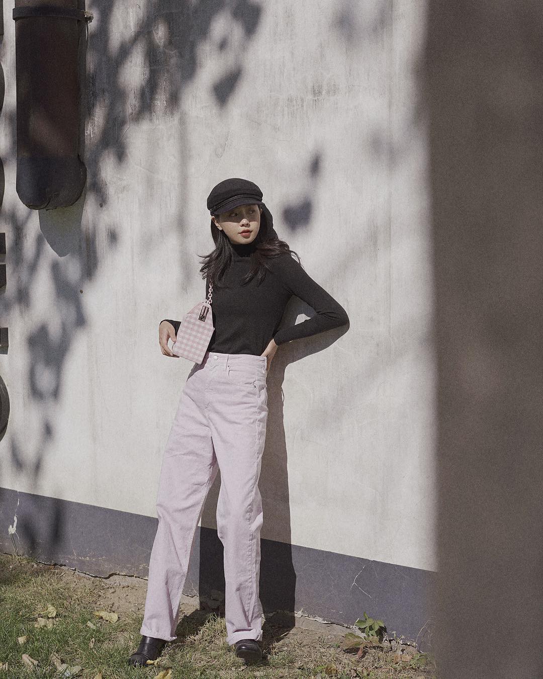 1. Mix quần trắng với đồ màu trung tính