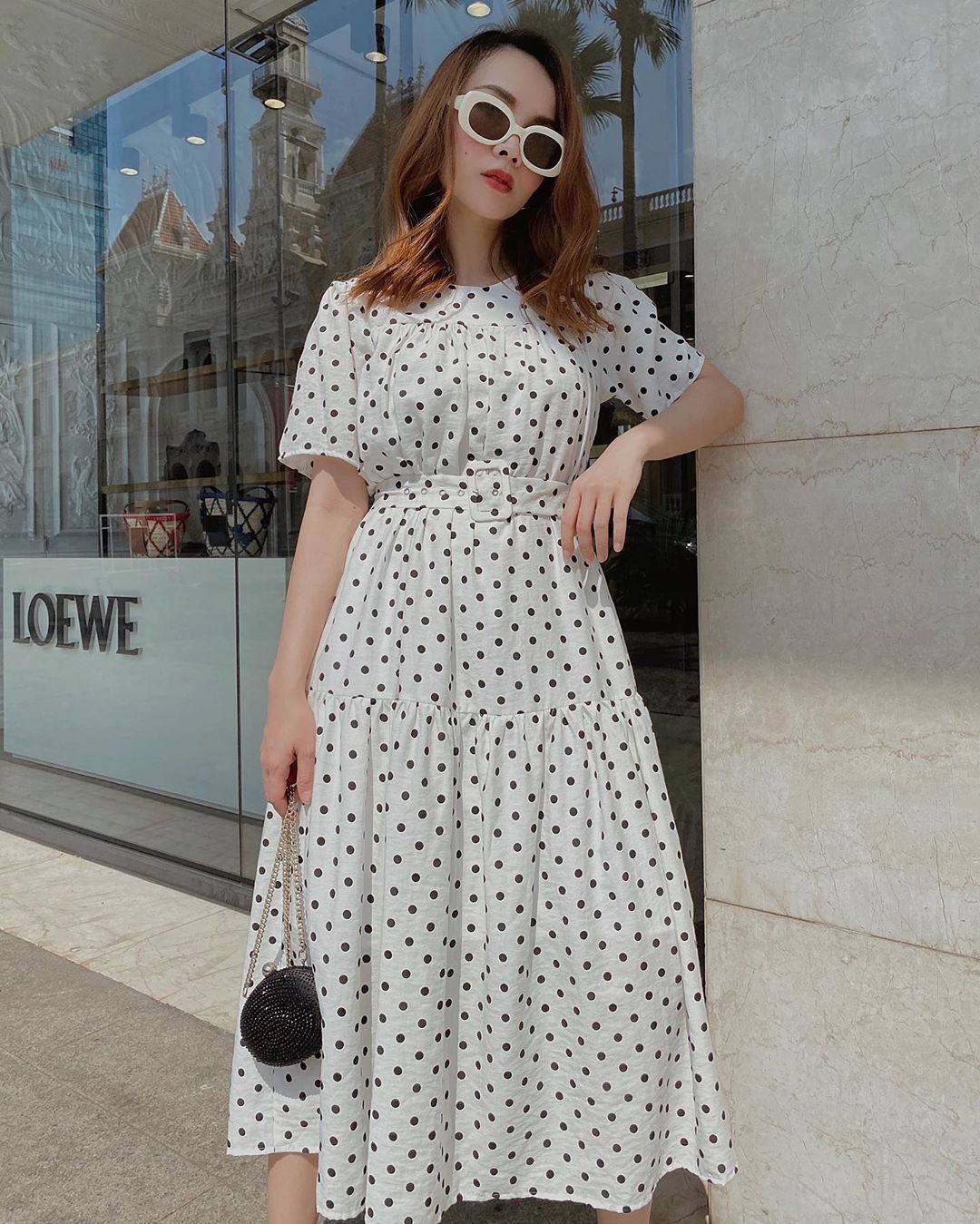 Bên cạnh váy hoa thì váy chấm bi cũng là item được nhiều chị em chuộng diện mùa hè. Item này vừa có nét tiểu thư cổ điển lại phảng phất nét kiêu kỳ sang chảnh, diện đi làm hay đi dạo phố cũng đều ổn cả.