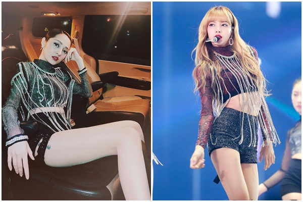 Đã vậy, cách mix match với croptop dài tay xuyên thấu, quần short cạp cao cùng boots đen của nữ ca sĩ Việt còn không khác "gà" YG tại MMA hồi tháng 12/2018 là mấy. Tuy diện sau nhưng do tìm được lối make-up phù hợp với phong cách gợi cảm, quyến rũ, Bảo Anh với Lisa vẫn được nhận xét là "một chín, một mười".