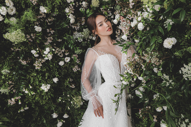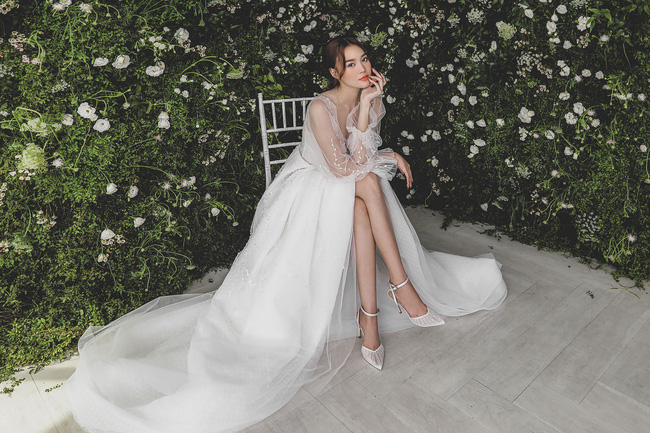 Bên cạnh đó, chiếc váy cưới tay bồng xuyên thấu nổi bật với những chi tiết đính kết tỉ mỉ, kì công cũng góp phần làm nên hình ảnh sang chảnh, lộng lẫy cho Ninh Dương Lan Ngọc. Những thiết kế váy cưới mà cô khoác lên mình đều có điểm chung là nhẹ nhàng, bay bổng, giúp bất kì ai khi chưng diện đều có được diện mạo thanh thoát, trẻ trung nhưng vẫn vô cùng quyến rũ.