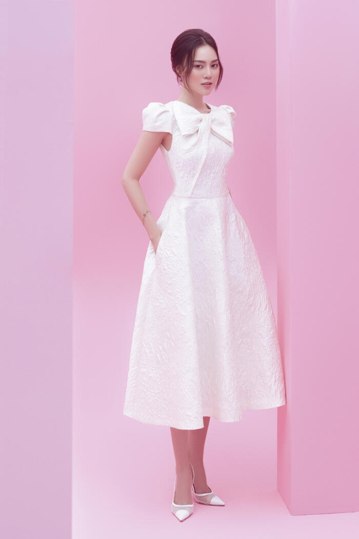 Chia sẻ về sự lựa chọn này, NTK cho hay “Ngọc là đại diện cho hình ảnh quý cô thành thị sang trọng, cuốn hút. Vẻ đẹp hiện đại, nhưng thanh thoát, ngọt ngào của cô ấy là nguồn cảm hứng lớn cho việc ra đời những trang phục dành cho phái đẹp. Ngọc cũng gắn liền hình ảnh với phong cách tối giản, sang trọng”.