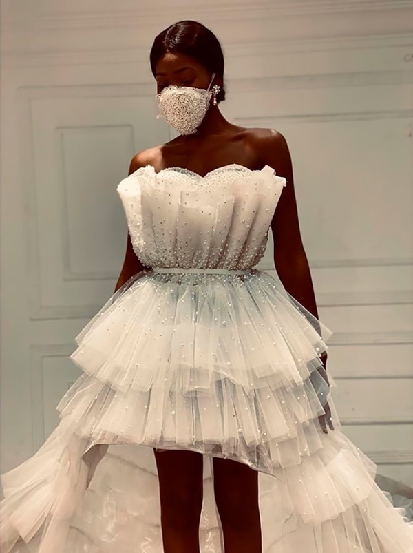 Trước khuyến cáo tránh tụ tập đông người, các đám cưới của nhiều cặp đôi cũng bị giới hạn cả về các nghi thức và số người tham gia. Nắm rõ câu chuyện thời cuộc, Samo Hejres – một nhà thiết kế người Ai Cập đã cho ra mẫu áo cưới đi kèm khẩu trang, chắc chắn là combo hữu ích, thời trang cho các cô dâu trong mùa dịch nCoV.