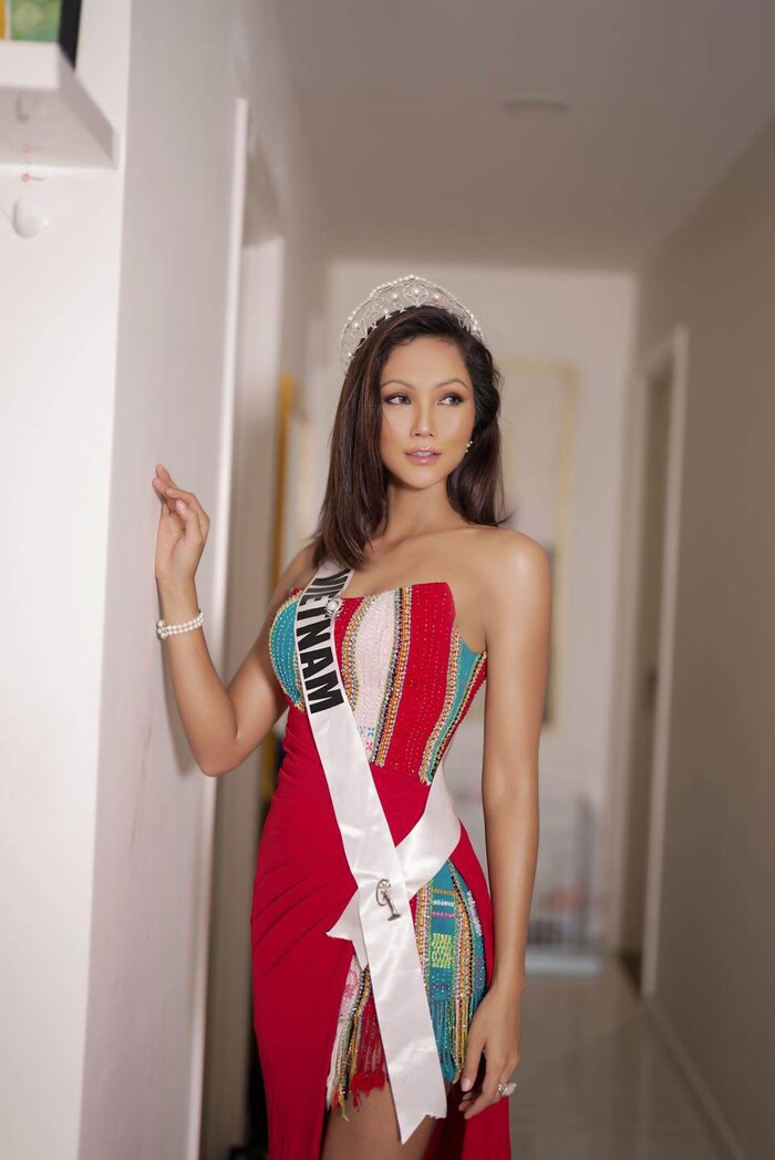 Hoa hậu H'Hen Niê đã khiến dân tình không khỏi trầm trồ khi đăng tải hình ảnh trang điểm, làm tóc chỉnh chu, đội vương miện, đeo sash quốc gia, mặc đầm cúp ngực xẻ tà vô cùng lộng lẫy để cổ vũ đội tuyển bóng đá Việt Nam trong đêm giành vé vào vòng loại thứ 3 của World Cup 2022.