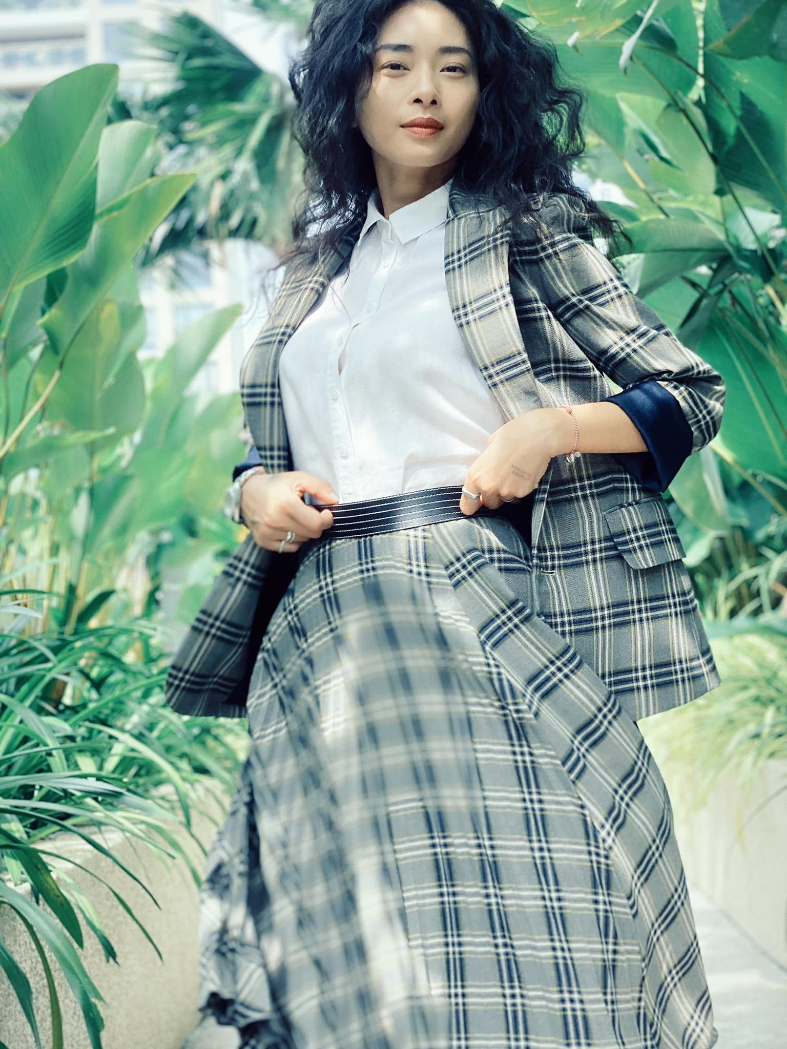 Ngay cả khi diện những kiểu áo đậm chất thanh lịch, nghiêm túc như blazer, Ngô Thanh Vân cũng tạo nên những outfit hết sức trẻ trung. Bí kíp của cô chính là lựa chọn đa dạng các mẫu mã blazer, từ trơn màu cho đến họa tiết kẻ ô rồi layer bên trong một chiếc áo thun. Sự xuất hiện của những chiếc áo thun màu trung tính không chỉ bảo đảm độ hài hòa của tổng thể mà còn trẻ hóa phong cách rất hiệu nghiệm. Trong trường hợp không diện áo thun bên trong blazer, Ngô Thanh Vân sẽ chọn áo blouse sáng màu để tạo hiệu ứng hack tuổi.
