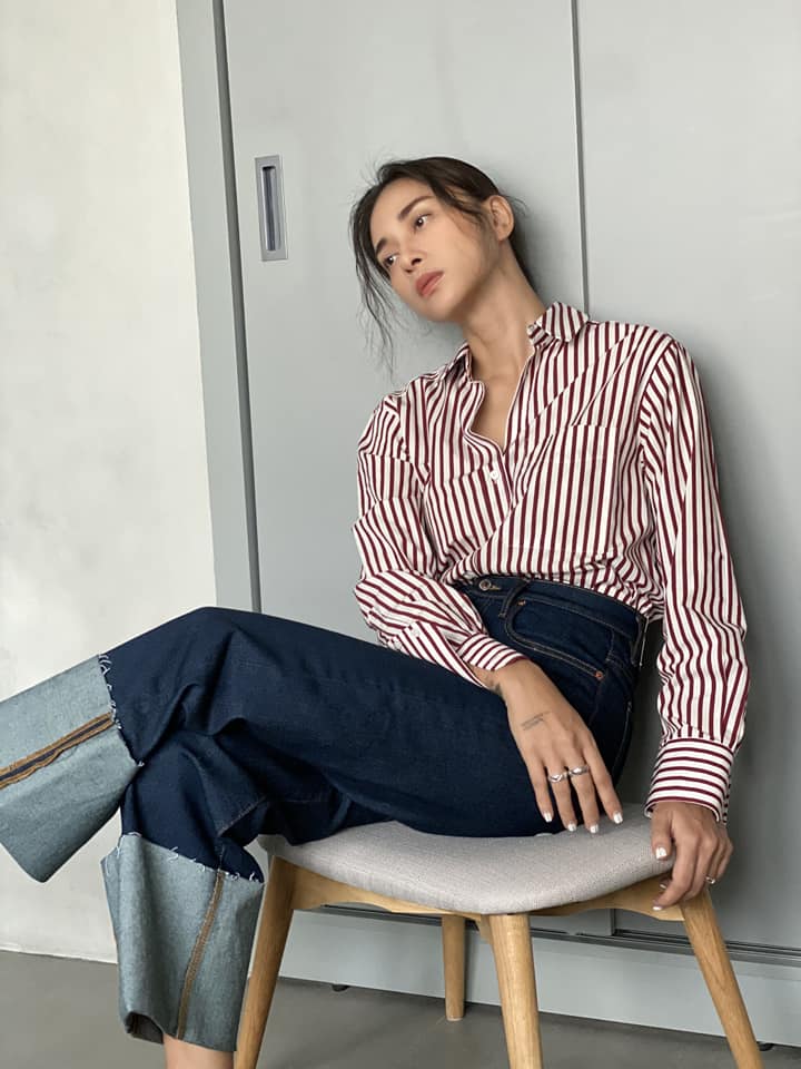 Một trong những món đồ "đinh" trong tủ áo quần của Ngô Thanh Vân chính là áo sơ mi. Nhưng khác với lựa chọn chững chạc của nhiều quý cô U40 với toàn áo tay bồng, áo blouse tối màu…, Ngô Thanh Vân lại dành nhiều sự ưu tiên hơn cho những chiếc áo sơ mi phom dáng cơ bản, mang màu sắc tươi sáng như trắng tinh tươm chẳng hạn; bên cạnh đó, áo sơ mi họa tiết kẻ sọc, màu mè một chút cũng là lựa chọn xuất hiện nhiều trong những tấm hình OOTD của nữ diễn viên.