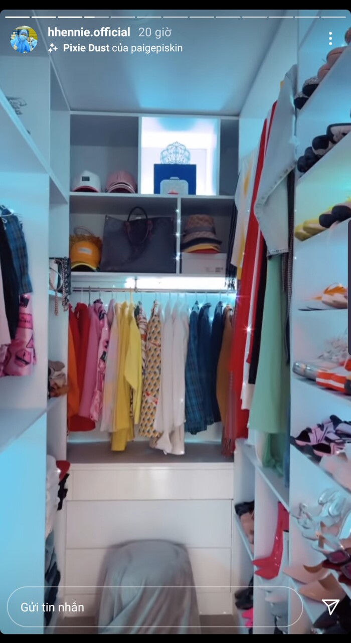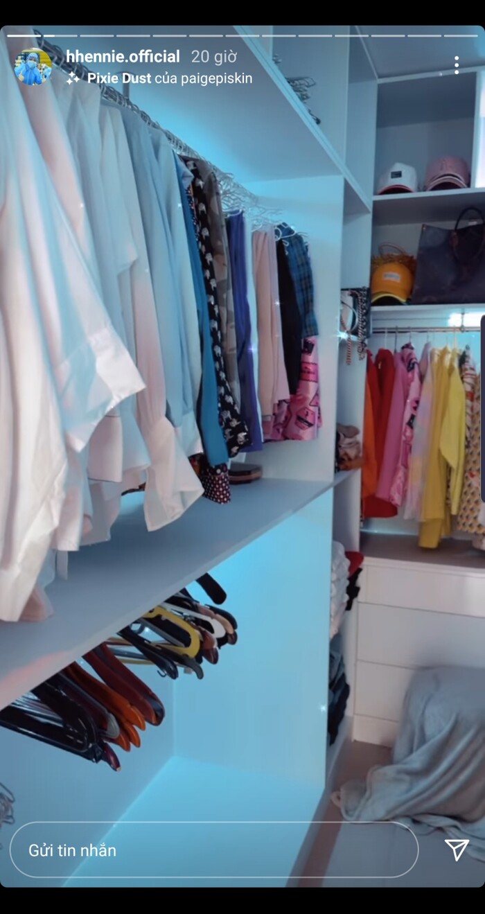Mới đây, H'Hen Niê đã chia sẻ cùng khán giả một góc nhỏ không gian nhà mới của mình. Cùng với đó, chân dài cũng tiết lộ tủ quần áo xịn sò, vậy là từ đây, những món đồ hiệu đắt giá, giày dép, túi xách hàng hiệu đã không còn chịu cảnh quăng quật lung tung nữa rồi.